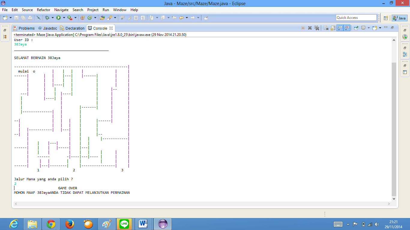 Println("Selamat datang dalam game Maze